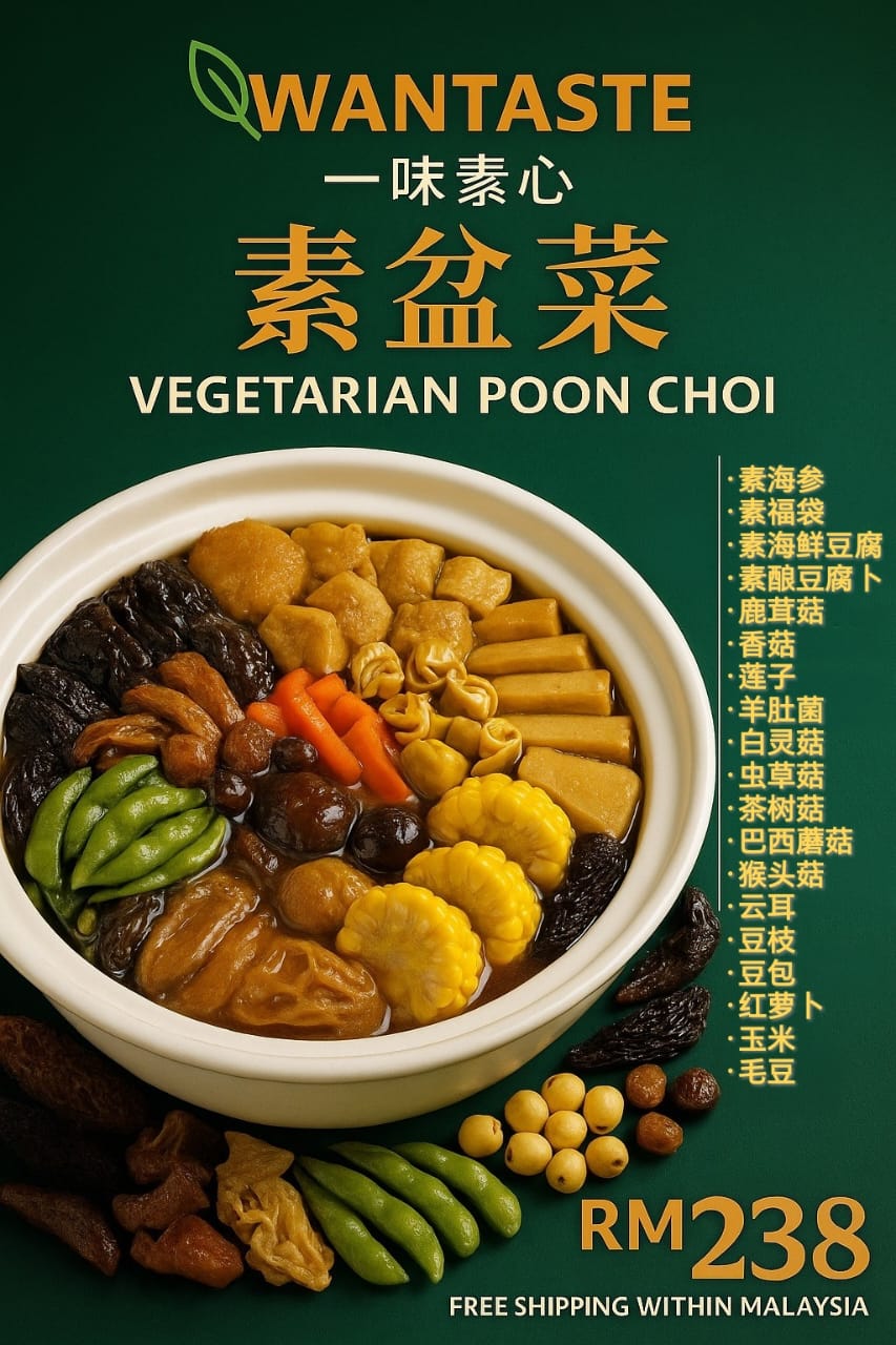 团圆佳节,一锅丰盛,轻松上桌! 精心烹调的素盆菜,让您在忙碌的节日中也能轻松准备丰盛佳肴。 无需繁琐备菜、无需长时间烹煮,只需加热即可享用 — 省时、省力、又健康! 每一层食材寓意吉祥满满,吃出家的温暖,吃出一整年的平安与福气。